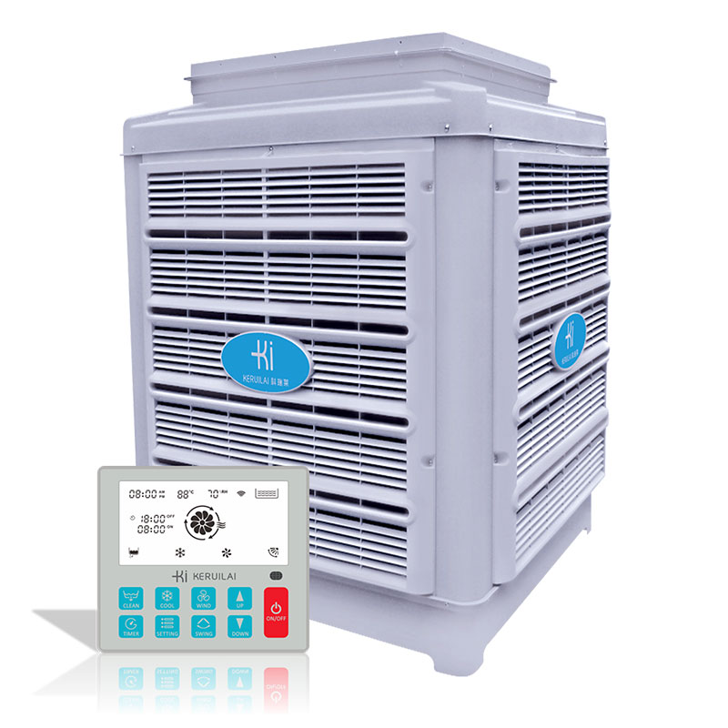 “科瑞萊”蒸發式冷氣機的核心降溫部件是“高效蒸發式濕簾”——純天然多層波紋植物纖維疊合物。根據“水蒸發吸收熱量,蒸發面積影響蒸發效率”這一自然物理現象,通過風機往室內送風,室外的新鮮空氣流經浸水的濕簾后空氣與水份充分接觸同時吸收空氣中的顯熱,從而達到降溫、換氣、除塵、增加室內空氣含氧量的目的,特別適用于高溫車間及人群密集的工作場所。
